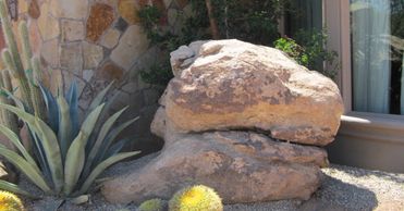 Our Granite, Boulders and Plants help to bring a complete finish to this nestled desert home.
